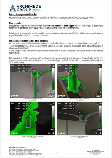L’analisi termografica misura la temperatura delle pareti, ed è indispensabile per studiare le condense. Grazie alla termografia riusciremo ad evidenziare:
