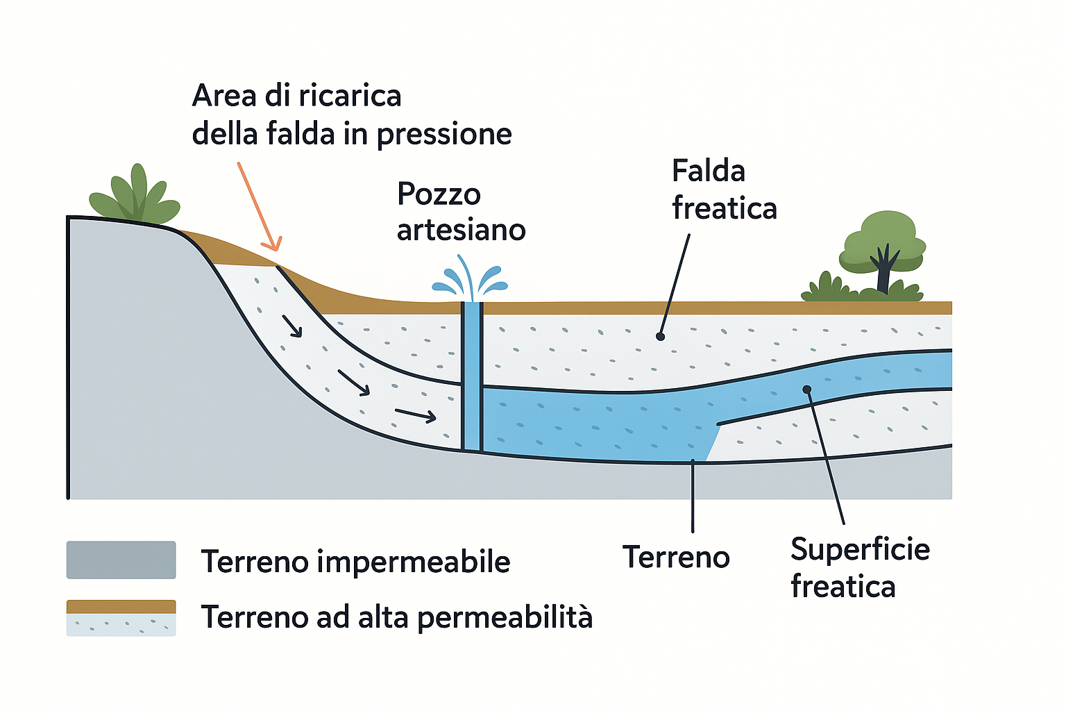 * falde acquifere freatiche continue/discontinue e falde ipogee;